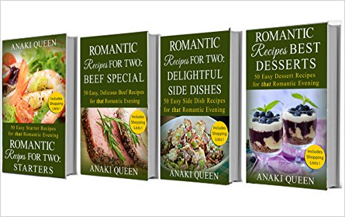 **ATTENTION! New Release Sale ! The price of this book will be raised soon. Grab your copy today! ** Thank you for making this recipe book box set a best seller! This Romantc Recipe Box Set includes: * Starters * Beef Special * Delightful Side Dishes * Best Desserts 200 recipes to choose from the THAT Romantic Evening. Have you ever wondered: How do I create a romantic dinner? How do I put the spice back in my relationship? If you have already started, then you probably know what it is like to decide on the dinner and sequence of meals. Anaki Queen has a favorite quote: “All you need is love. But a little chocolate now and then doesn't hurt.” - Charles M. Schulz What you will find in these romantic recipe books is that you will not only love these quick and simple dishes but you will be asked for your recipe secrets even if none of them are difficult to do – because your romantic setting of the table and the delectable food will make the romantic evening. The well-known published author Anaki Queen has compiled a mouth-watering collection of romantic dinner recipes for you and your partner to enjoy. These recipes are quick, easy and delicious. Anaki is an avid cook who believes that cooking should be fun and not a stressful event. The food should be a delivery of love and passion. Scroll up and click on "Buy Now" to deliver almost instantly to your Kindle or other reading device. Keywords: romantic recipes, dinner for two, meal for two, recipes for two, cooking for two, recipe box set, dinner recipes for two